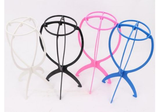Lightweight and collapsible wig stands designed for easy storage and travel. Available in multiple colors (clear, black, pink, and blue), these stands feature a stable tripod base that folds flat when not in use. Perfect for displaying, styling, or drying wigs and hairpieces. The compact design makes them ideal for professional stylists, cosplayers, or anyone needing convenient wig storage solutions at home or on-the-go.